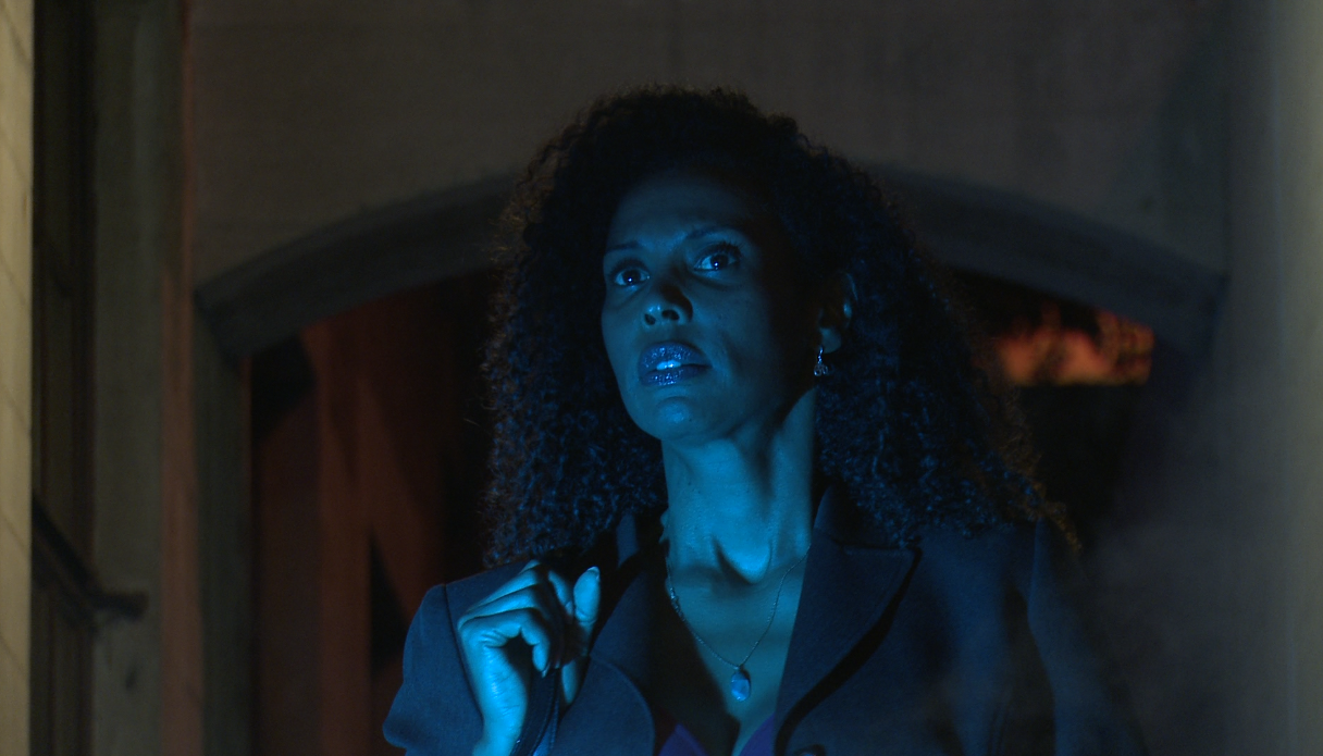 A woman suffers post traumatic stress when walking through an abandoned alley.
